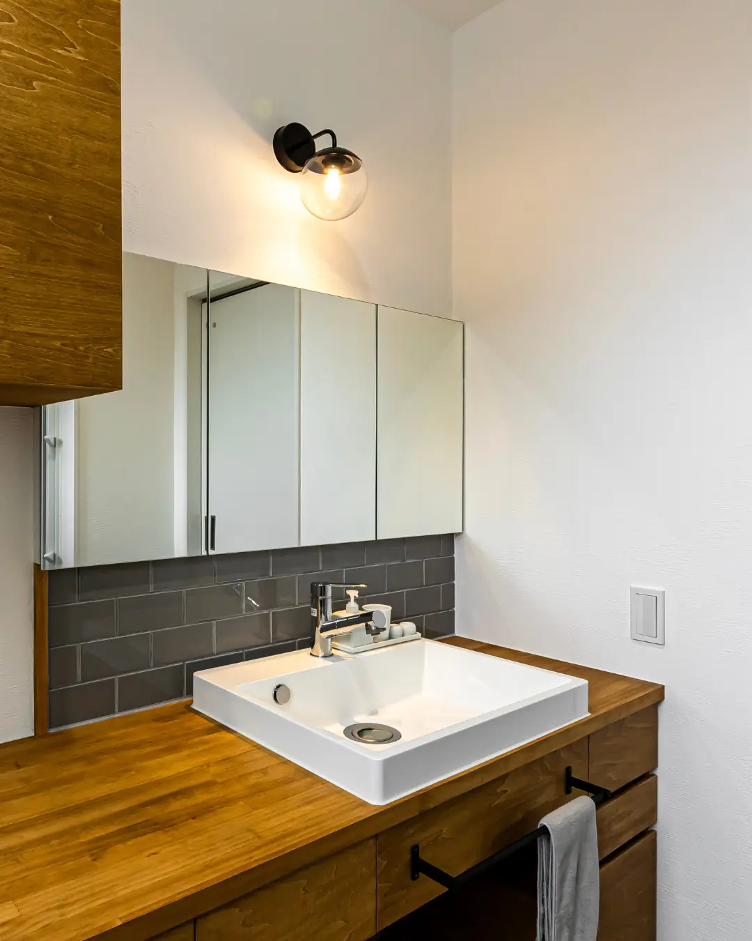 タイルや収納など細部にわたりこだわり抜き、多彩な素材と手づくりの造作家具で自分たちだけの住まいが完成しました。